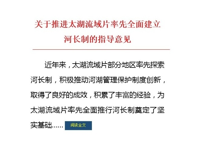 人民日报:太湖流域全面建立河长制