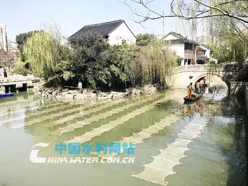 梁溪河泰康浜布设石墨烯光催化网恢复水体自净能力 (记者 陈锐/摄)