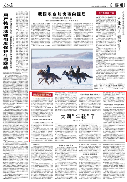 制度保障跟上。江浙沪相继通过地方法规,对河长制进行立法。江苏建立河长联席会议制度,稳定投入,省级财政每年安排4亿元,市县两级每年投入近2亿元,专项治河。上海梳理河长问题清单、责任清单、项目清单,将河长制任务实行全过程目标管理。