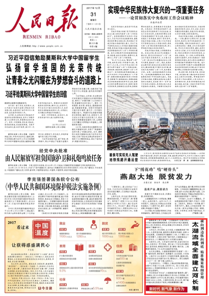 本报北京12月30日电(记者赵永平)记者日前从水利部太湖流域管理局获悉:在河长制先行地太湖流域,河长上岗,机制到位,率先全面建立河长制体系,所有河湖都有了健康守护人。