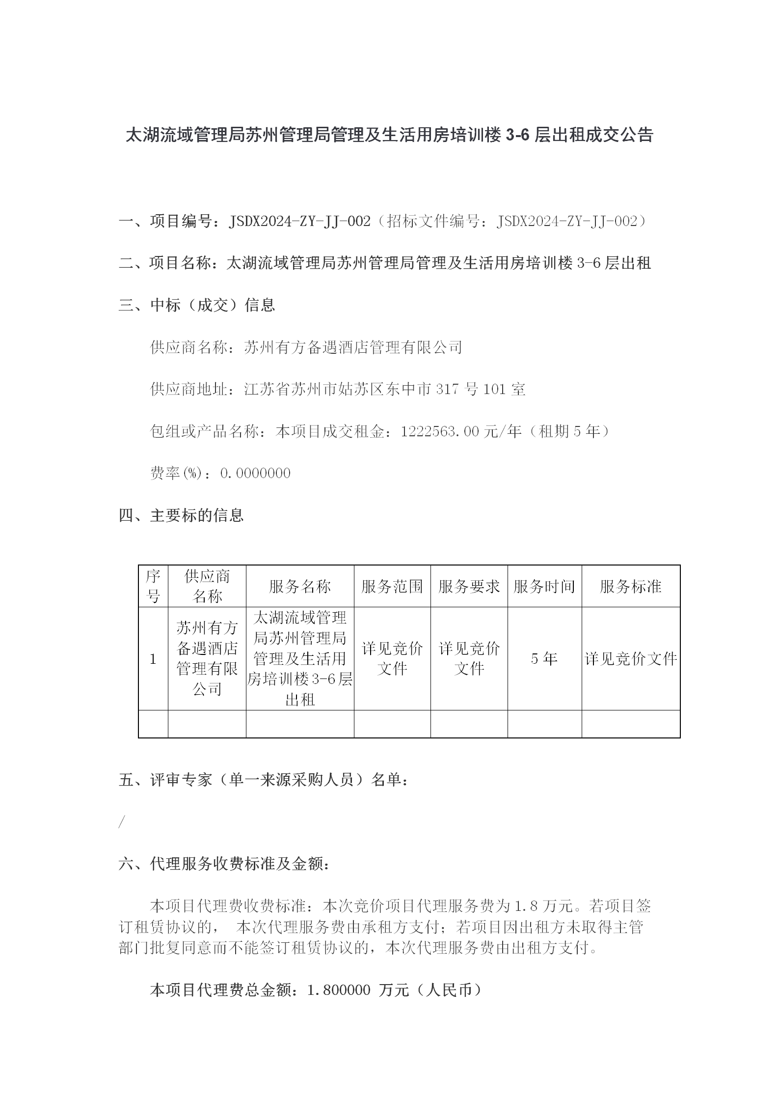 太湖流域管理局苏州管理局管理及生活用房培训楼3-6层出租成交公告