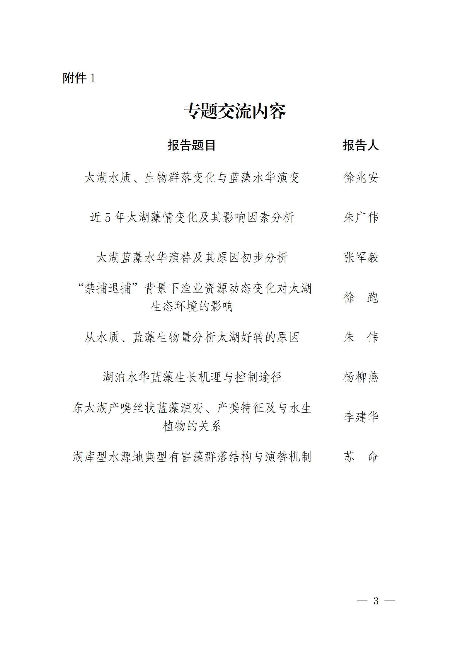 关于召开太湖蓝藻水华及藻类结构变化专题研讨会的通知