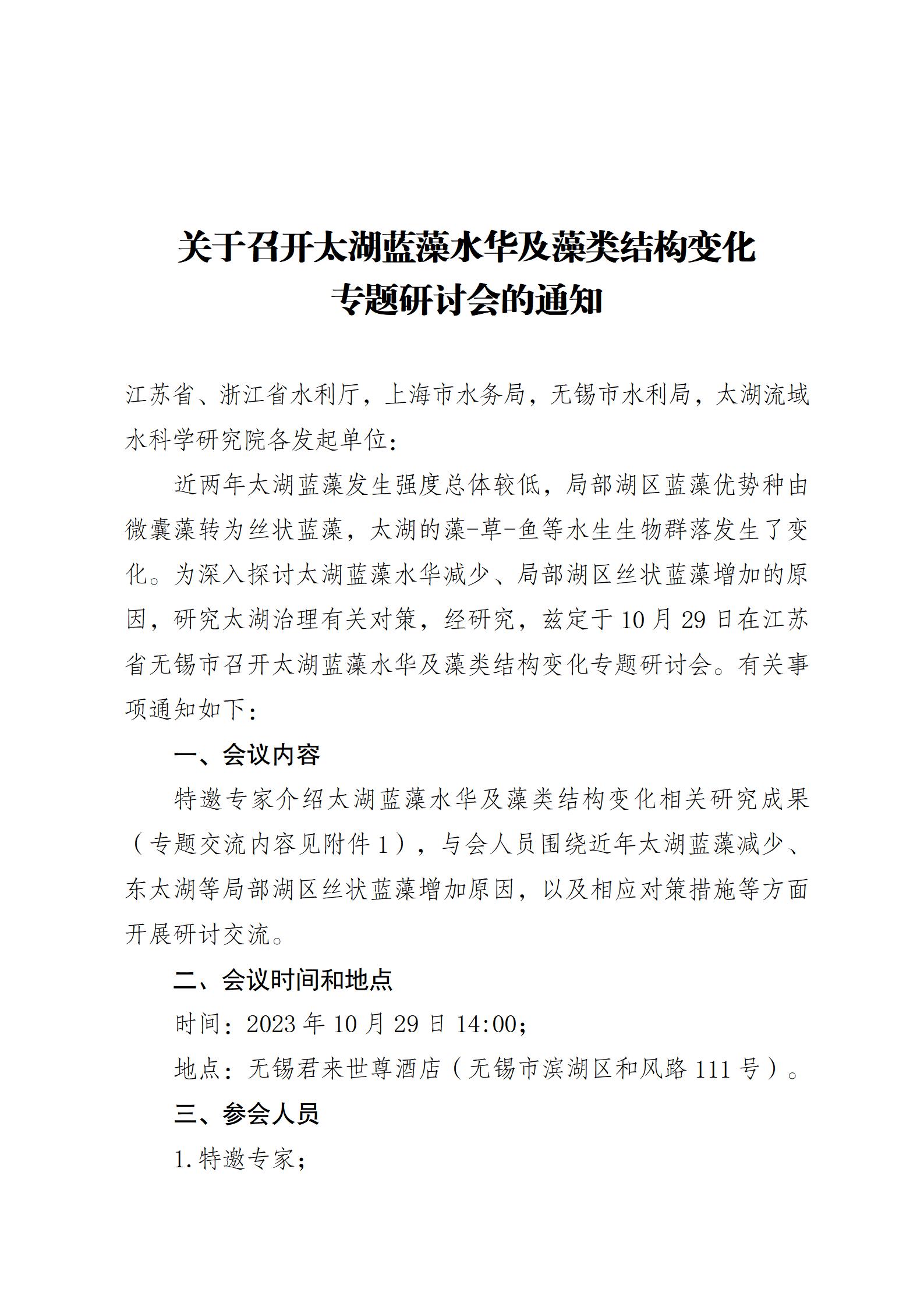 20231013-太湖研究院关于召开太湖蓝藻水华及藻类结构变化专题研讨会的通知V2-网页发布用.docx